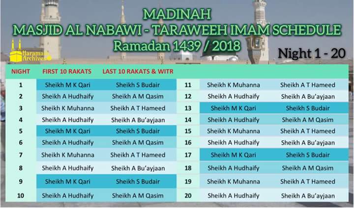 Haramain Imaams Schedule For Taraweeh Tahajjud Facebook